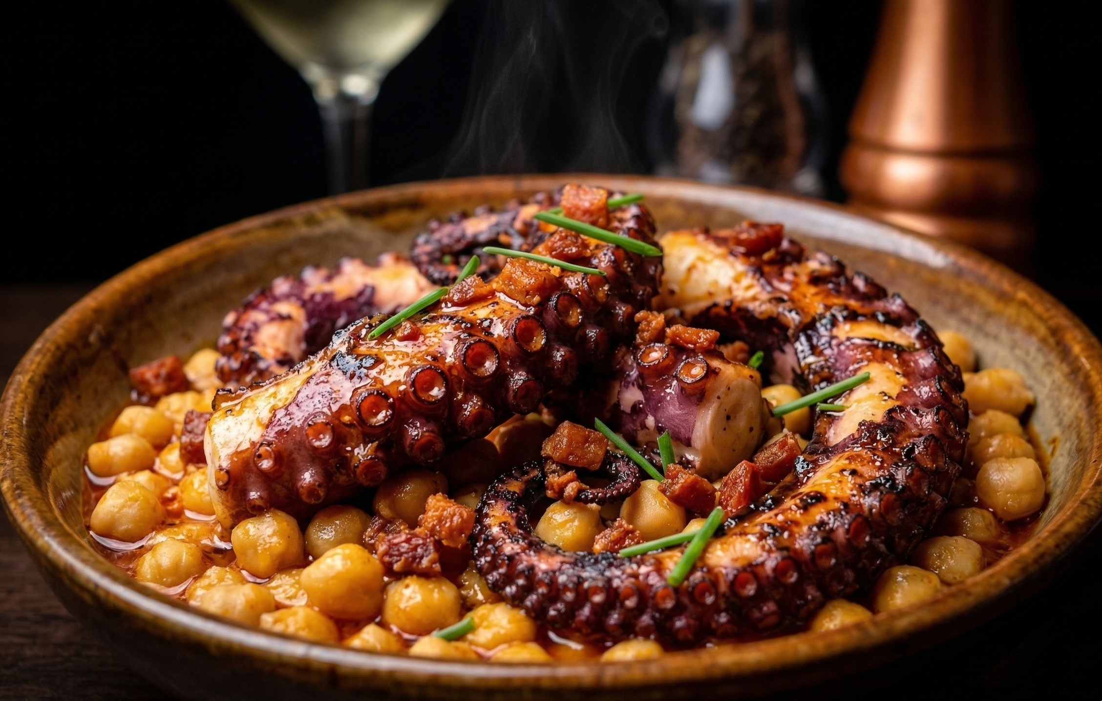 At the heart of the restaurant is the wood-fired grill, fueled by apple wood logs that bring deep flavor and perfect char to every cut of meat. Around it, Manny built a menu that reflects his influences: Argentine steaks, Mediterranean seafood, Spanish-style tapas, and classic steakhouse favorites.